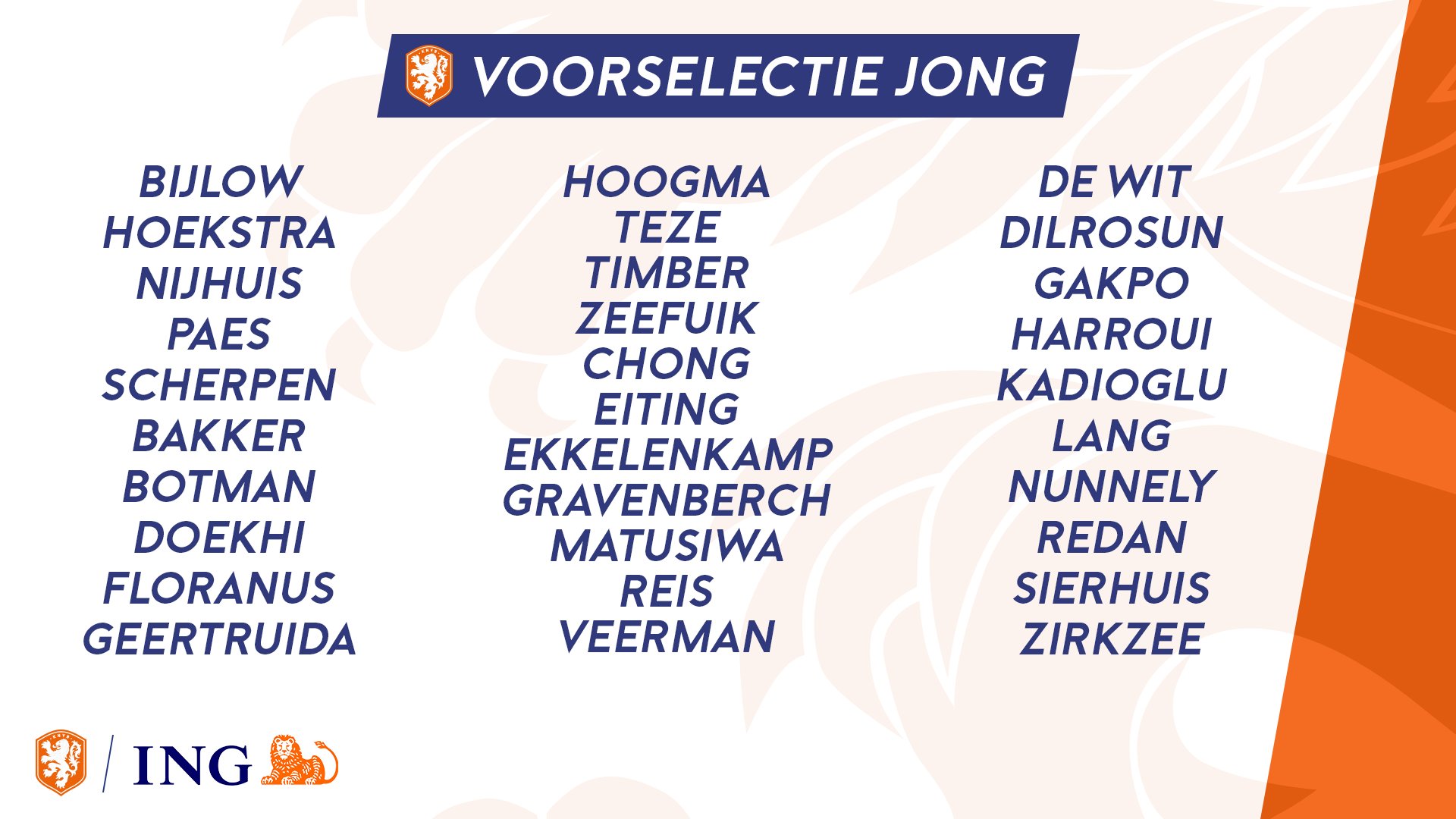 Erwin van de Looi ogłosił szeroką kadrę reprezentacji Holandii U-21 na mecze z Rosją i Norwegią. Na liście znaleźli się Justin Bijlow i Lutsharel Geertruida.