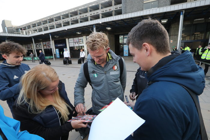 W środę Feyenoord przybył do Manchesteru. Po około godzinnym locie Portowcy o 13:00 (12:00 czasu lokalnego) wylądowali na angielskiej ziemi. Na lotnisku piłkarze zostali przyjęci przez małą grupę łowców autografów, którzy byli szczególnie zainteresowani podpisami Dirka Kuyta i trenera Giovanniego van Bronckhorsta.