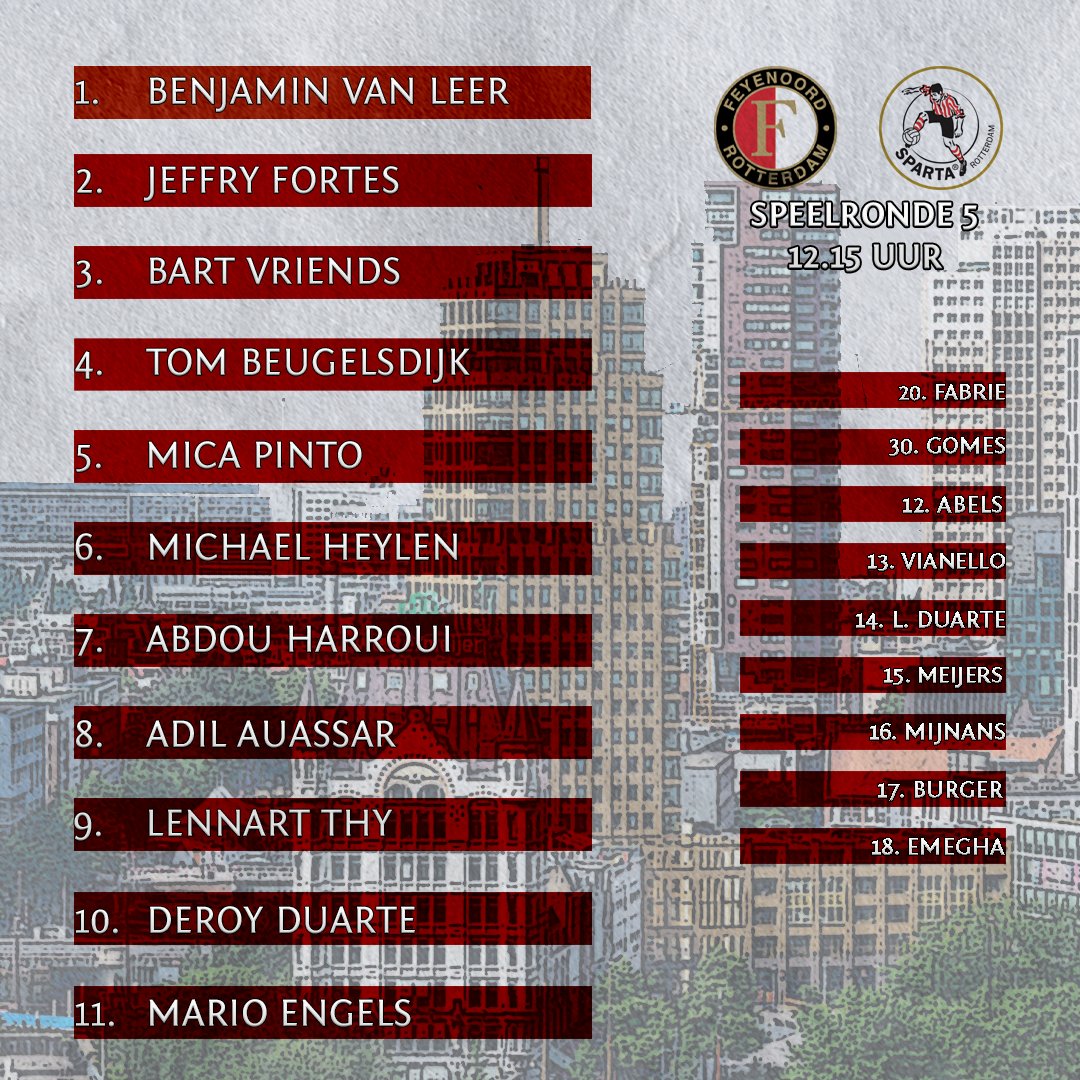 Znamy już składy na derbowe spotkanie. Feyenoord wyjdzie w takim samym zestawieniu, jak na Willem II. Na ławce z kolei pierwszy raz pojawi się Christian Conteh.
