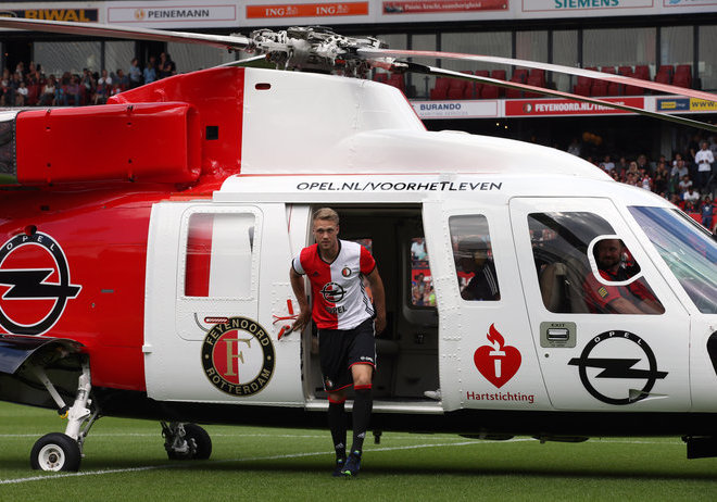 Spośród trzech zawodników Feyenoordu, którzy wyszli w niedzielę z helikoptera na De Kuip, Nicolai Jørgensen był zdecydowanie najbardziej szczęśliwy, gdy wreszcie postawił stopę na ziemi. Jego koledzy z pokładu, Justin Bijlow i Brad Jones mieli dużo śmiechu z nowego kolegi, który zmaga się z lękiem wysokości. Niemniej Duńczyk był pod wielkim wrażeniem.