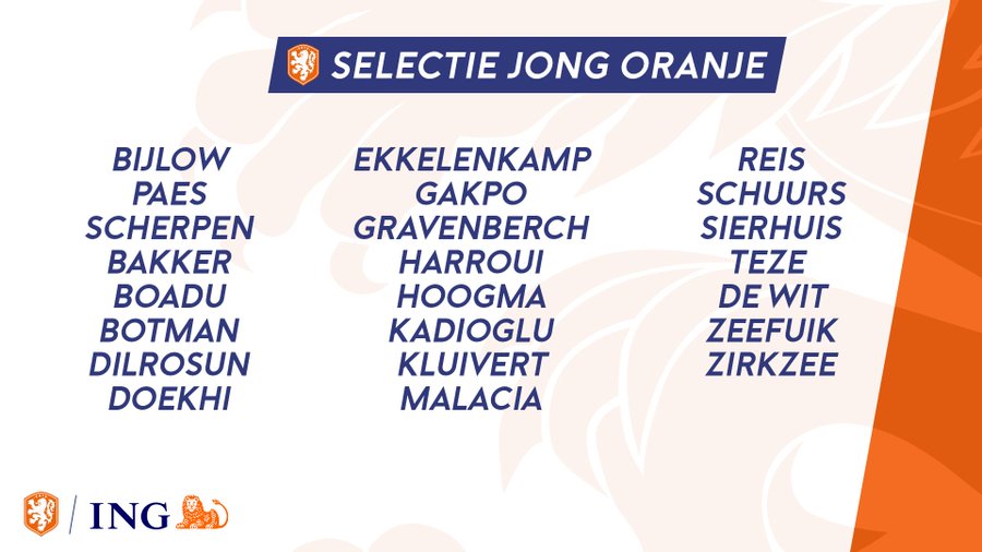 23-osobowy skład holenderskiej drużyny narodowej U-21 jest już znany. W trakcie ostatniej przerwy reprezentacyjnej, Jong Oranje zmierzą się z Rosją i Portugalią. W spotkaniach tych okazję do występu będą mieli Justin Bijlow i Tyrell Malacia.