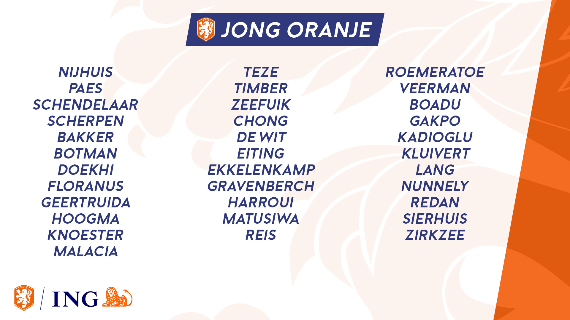 Oprócz wstępnej selekcji pierwszej reprezentacji Holandii, wstępna selekcja kadry U-21 została ogłoszona w niedzielę wieczorem. Tyrell Malacia i Lutsharel Geertruida to dwaj gracze Feyenoordu, którzy zostali powołani.