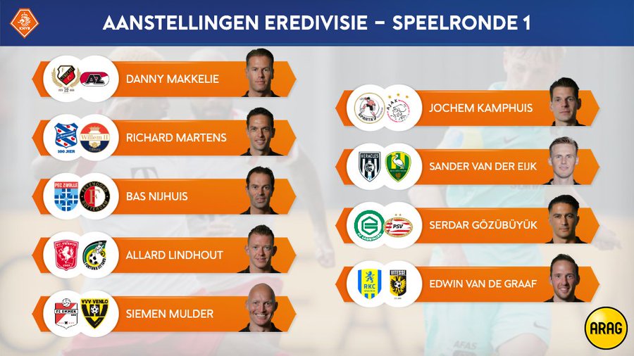 Obsada sędziowska 1. kolejki Eredivisie: