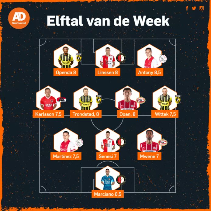 Marciano 7; Pedersen 6,5, Geertruida 7, Senesi 6,5, Malacia 7; Aursnes 7,5, Til 7,5 (67. Nelson -), Kökcü 7,5 (30. Jahanbakhsh 7); Toornstra 6 (82. Diemers -) Linssen 8 (67. Dessers -), Sinisterra 7,5 (82. Bannis -)