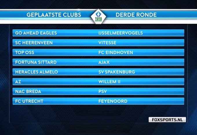Wczoraj wieczorem Feyenoord zakwalifikował się do kolejnej rundy Pucharu Holandii. Klub dołącza zatem do piętnastu innych zwycięzców tej rundy pucharowej - a zatem potencjalnych przeciwników. Losowanie odbędzie się w sobotę wieczorem i będzie transmitowane na żywo w FOX Sports.