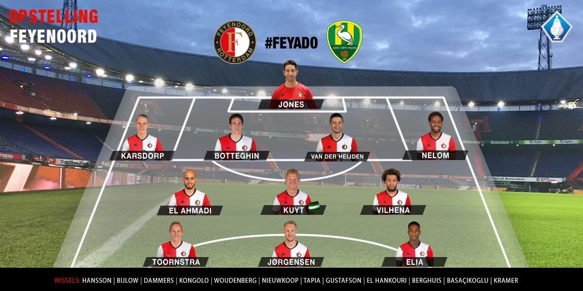 W tym roku, jak i w tym miesiącu Feyenoord rozegra ostatnie spotkanie w pucharze Holandii. Dziś Portowcy podejmą u siebie ADO Den Haag. Zatem przedstawiamy wyjściowe skład, obu ekip: