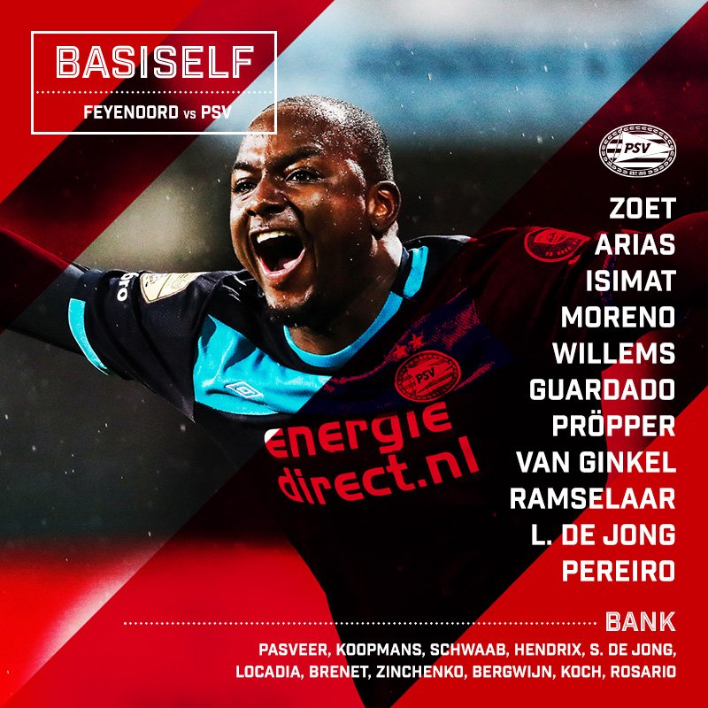Już za niespełna godzinę na De Kuip rozpocznie się hit 24. kolejki, w którym Feyenoord zmierzy się z PSV. Zatem czas na składy obu drużyn: